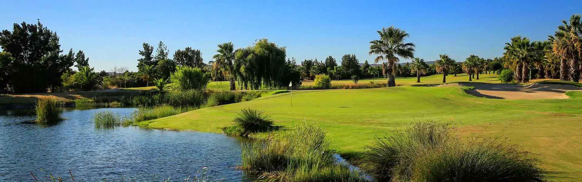 Dieser Platz mit seinen vielen Wasserhindernissen und wenigen Bäumen ist in den Tiefen des Küstengebietes gelegen und unterscheidet sich erheblich von den anderen in Vilamoura.